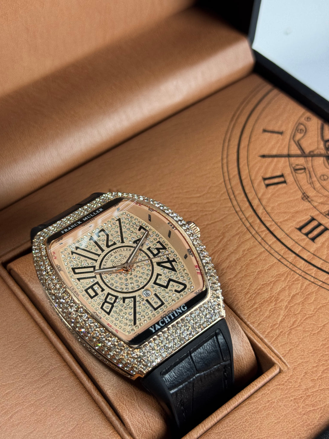 Frank Muller Brown Silicon Leather Strap With Golden Dail