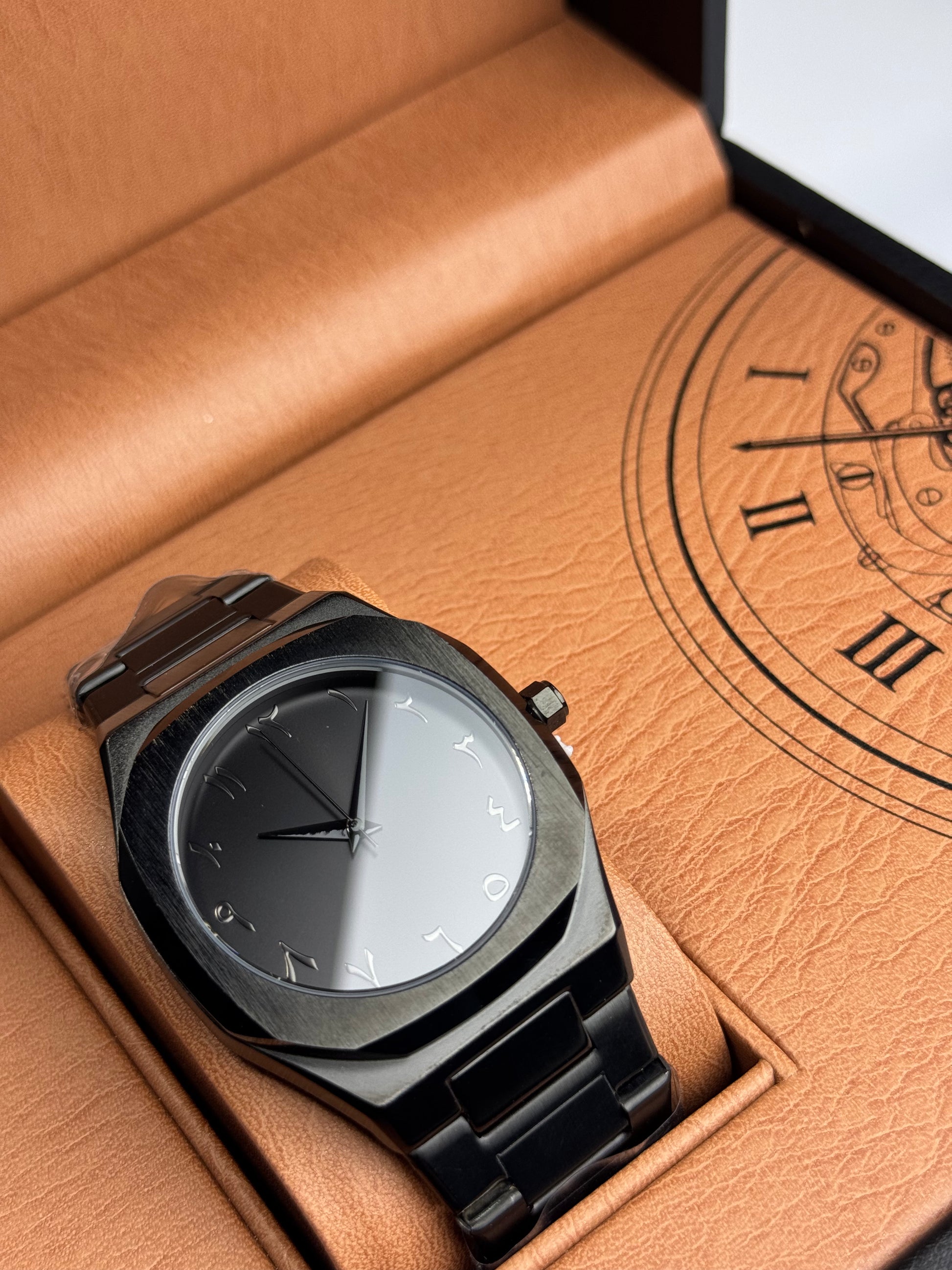 Black Arabic Aura – A timepiece that blends cultural elegance with modern design. Its deep black dial, highlighted by refined Arabic numerals, creates a look that is both bold and timeless. Crafted with attention to detail, it offers durability, precision, and a sophisticated presence on the wrist. The Black Arabic Aura is more than just a watch — it is a symbol of heritage, confidence, and understated luxury.