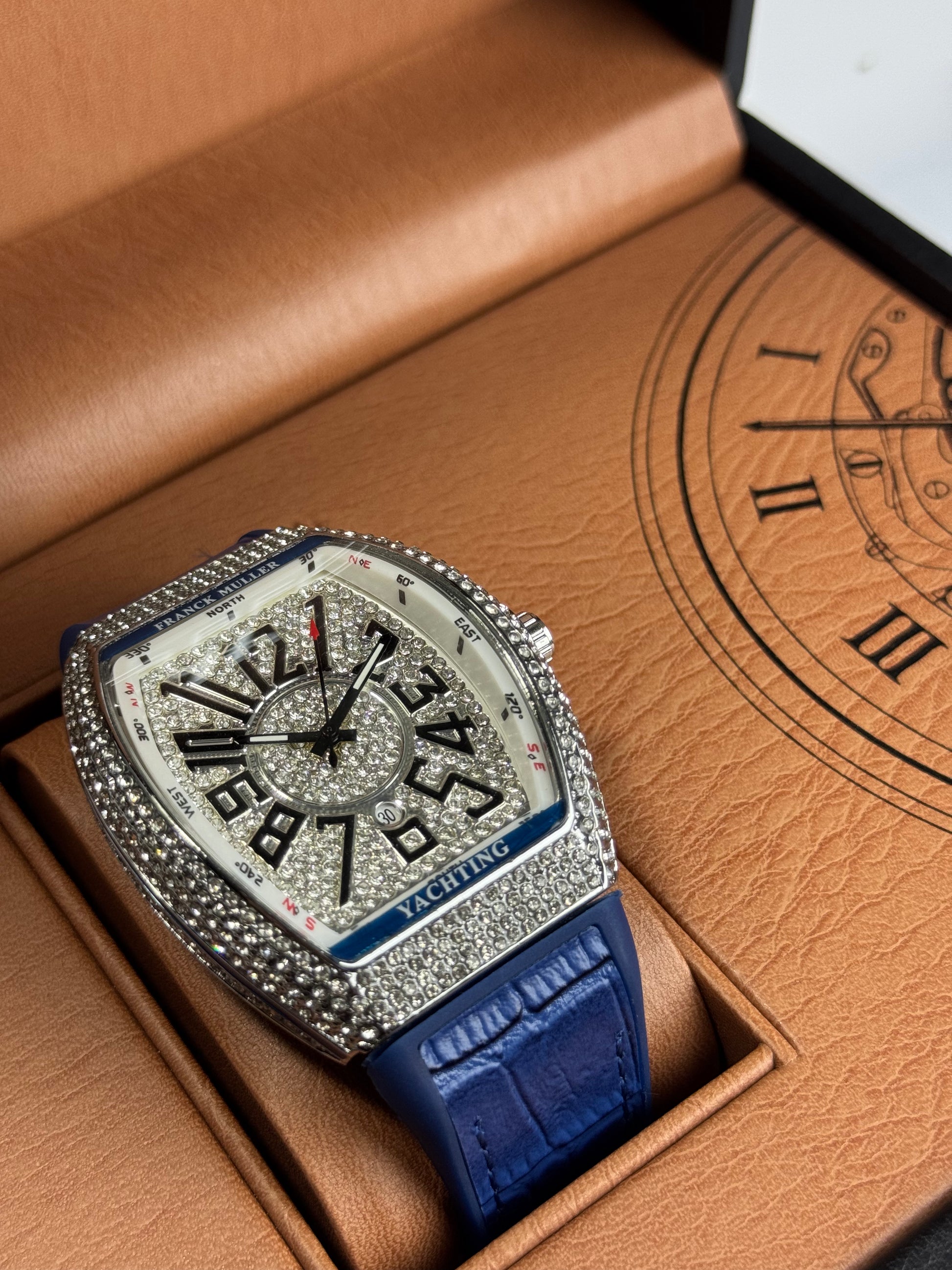 Frank Muller Blue Silicon Leather Strap With White Dail