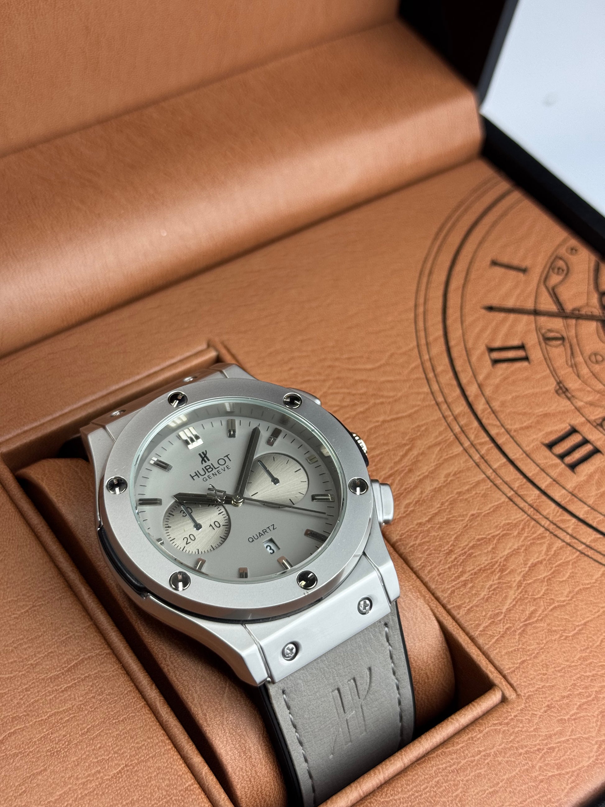 Hublot Leather Strap – Combining bold design with refined comfort, this Hublot timepiece pairs its striking case with a premium leather strap for a touch of elegance. The supple strap enhances wearability while maintaining the brand’s signature fusion of luxury and innovation. With its precise movement, durable build, and distinctive aesthetic, the Hublot on leather becomes a perfect balance of sophistication and modern style — a watch made to stand out in any setting.