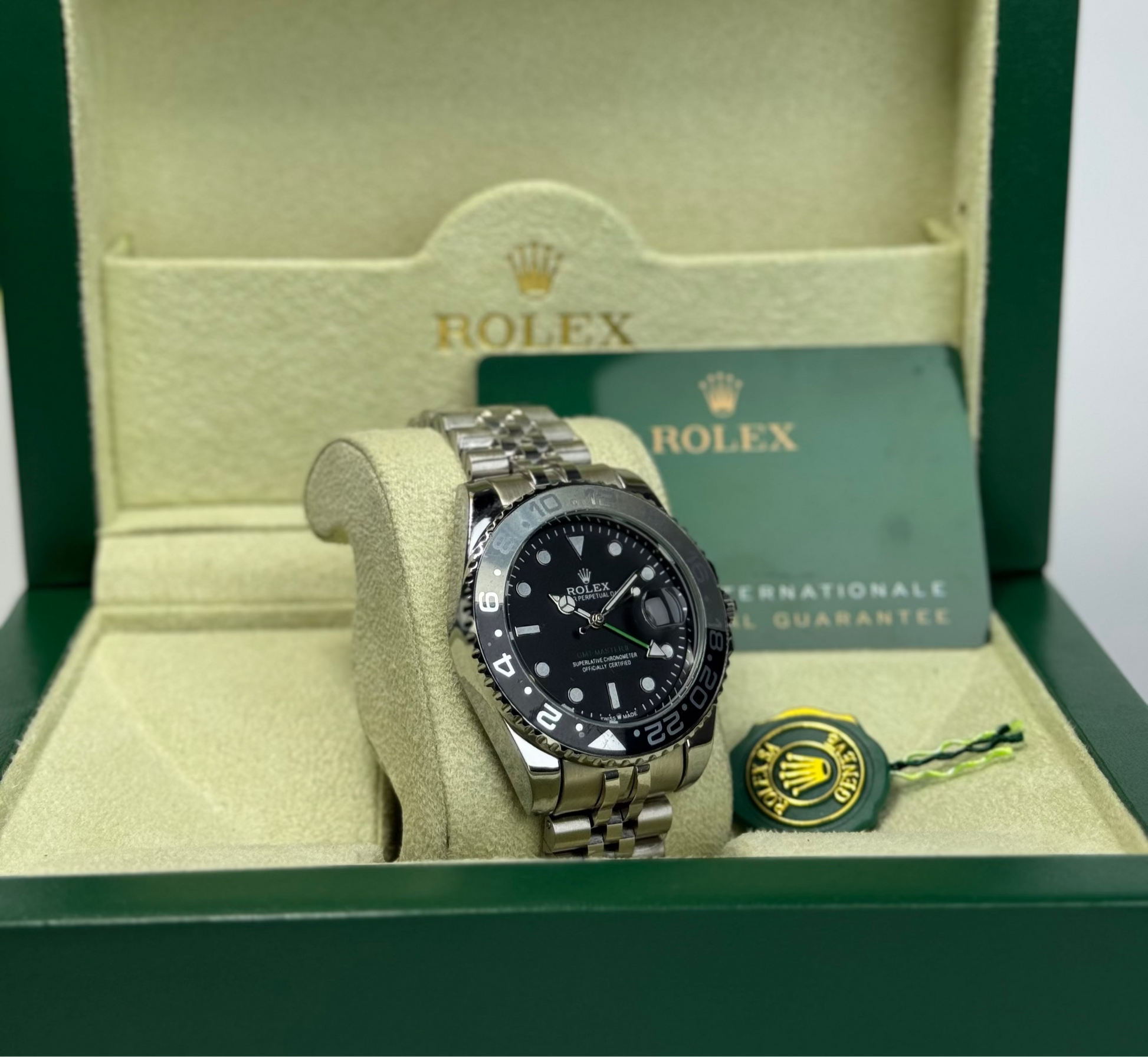 Rolex GMT-Master II – Built for precision and adventure, the GMT-Master II is crafted for individuals who move seamlessly across time zones. Its Oystersteel or precious metal construction showcases strength and refinement, while the signature two-tone Cerachrom bezel enables easy tracking of multiple time zones. The 40mm Oyster case provides reliable water resistance, and the advanced calibre 3285 movement ensures accuracy with an impressive 70-hour power reserve. Combining innovation, durability, and timeless appeal, the GMT-Master II stands as the perfect companion for world travelers and professionals who value performance and style.
